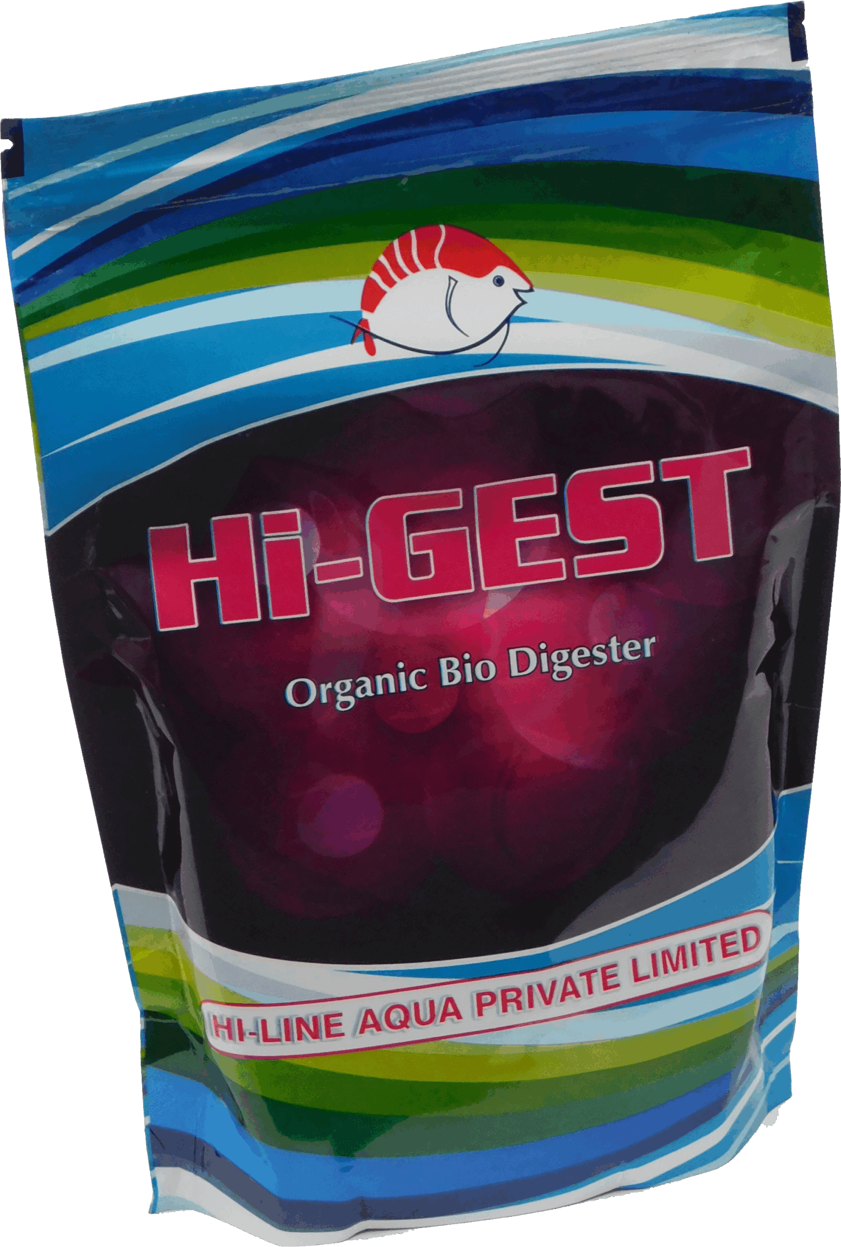 Mix 2 Kg of Hi-Gest with 20 litres of water and apply all over the pond of one hectare. Apply once in 10 days or as advised by a technician.